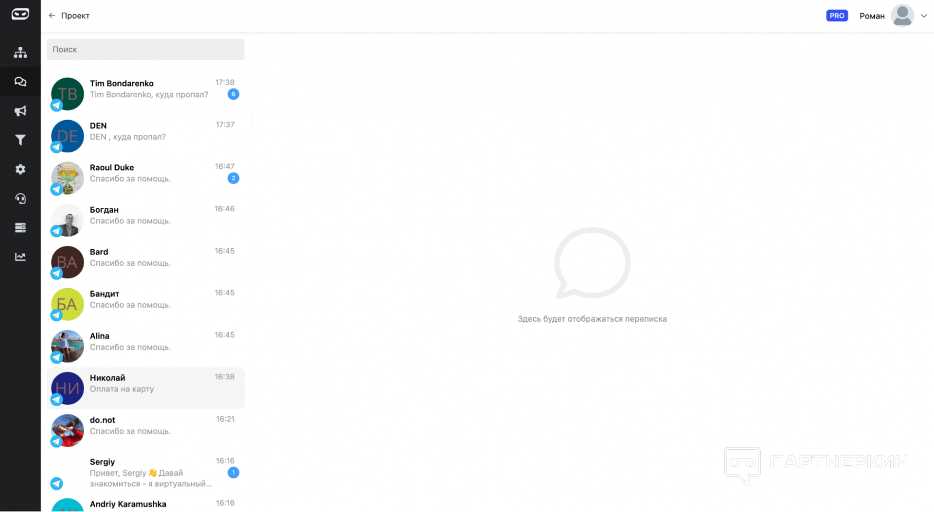 Помимо встроенного мессенджера, также имеется CRM-система с возможностью кастомизации под ваши цели.