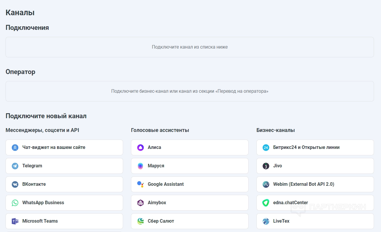 Радует, что имеется возможность интеграции сразу с несколькими платформами, начиная от «Салюта» Сбербанка и заканчивая Телеграммом. В сочетании с внутренней телефонией это даст отличное маркетинговое преимущество перед конкурентами, потому что теплые заявки гораздо проще в обработке, и имеется минимальная необходимость в менеджерах (то есть, затрат на обслуживание в разы меньше).