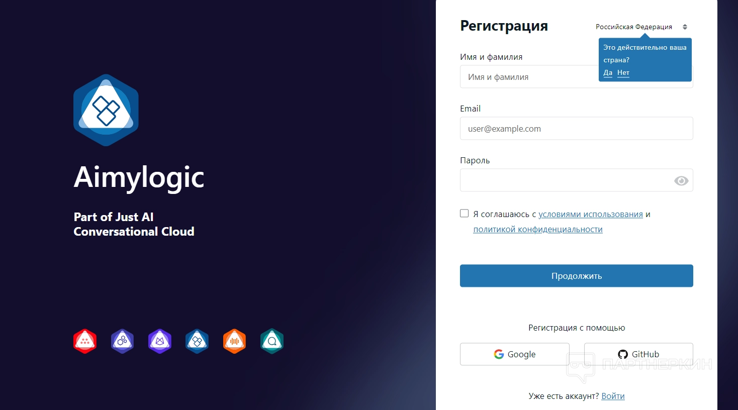 2. Сразу после нажатия происходит переход на страницу регистрации аккаунта. Автоматически будет определена страна для того, чтобы локализовать информацию, но в целом от пользователя потребуется только указать имя, фамилию, адрес электронной почты и придумать пароль. Помимо этого можно зарегистрироваться с помощью Google-аккаунта или Github.