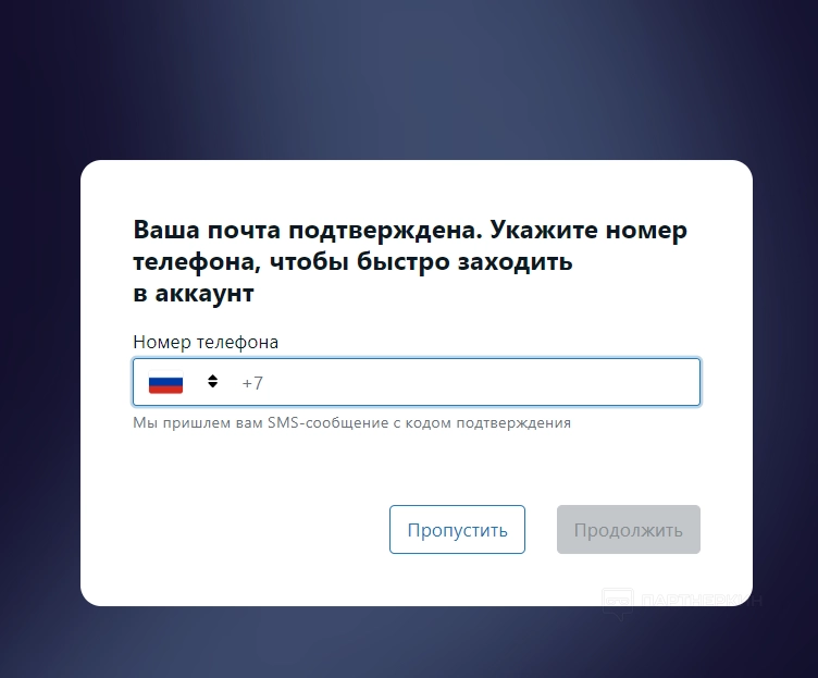 5. Последний шаг регистрации — подтверждение номера телефона. Специально для всех тех, кто хотел пользоваться мультиаккаунтом и постоянно обновлять чат-бота с бесплатным тарифом, разработчики решили ввести ограничение по IP-адресу и телефонии. В целом, этот момент можно пропустить, — но в дальнейшем это приведет к блокировке части функционала.
