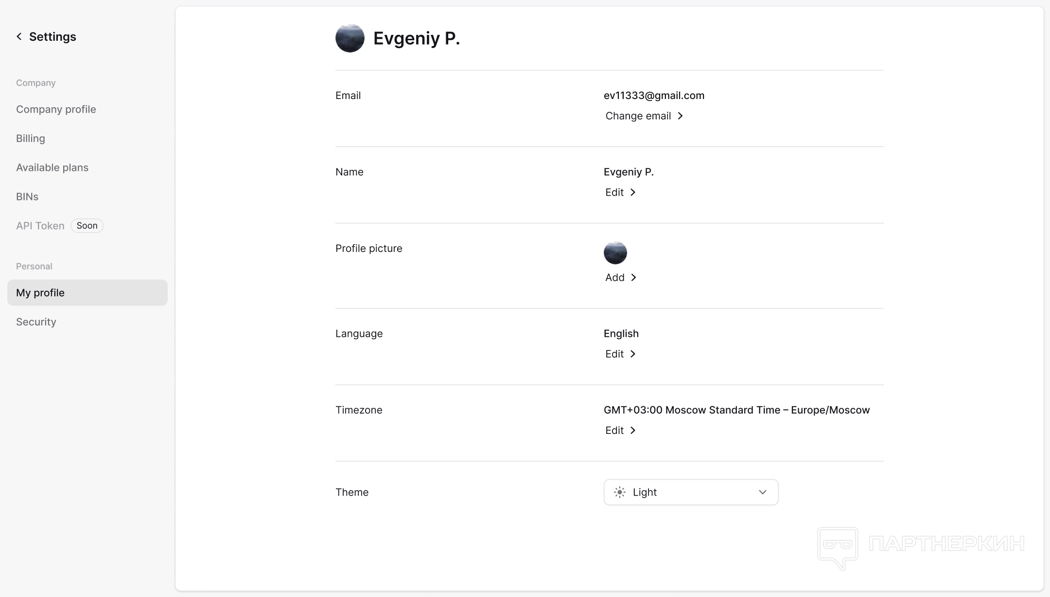 Наконец, остался раздел настроек, где можно настроить личный профиль или профиль компании.