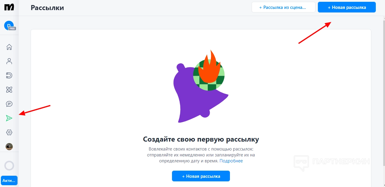 Важно: перед созданием рассылки пользователю нужно приобрести конструктор сценариев Marketing Automation (первые 7 дней бесплатно). С помощью инструмента можно: