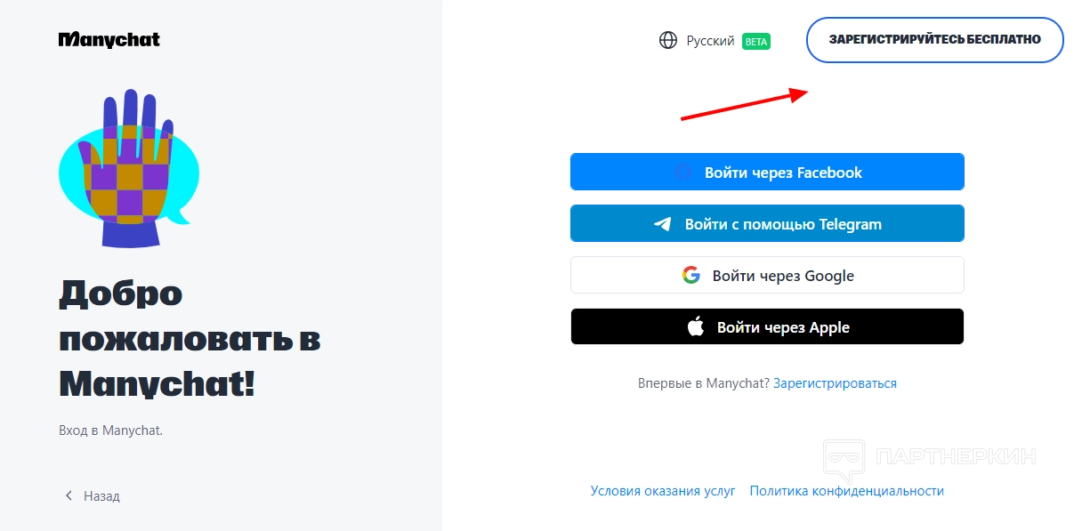 Далее — кликнуть «Зарегистрироваться бесплатно».