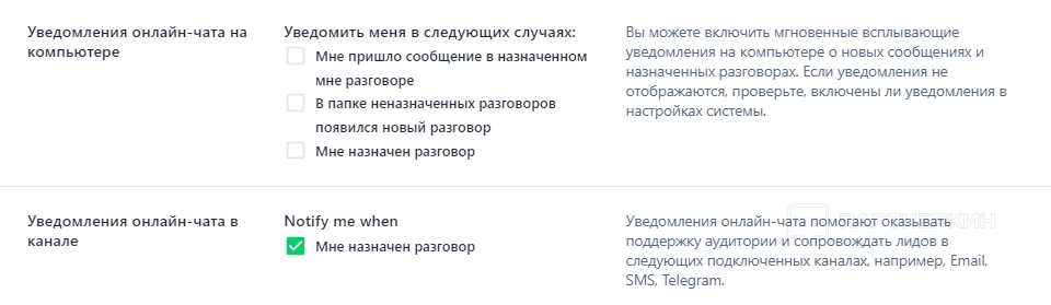 2. Уведомления онлайн-чата на компьютере. Пользователь может включить мгновенные всплывающие уведомления на компьютере о новых сообщениях и назначенных разговорах. Если уведомления не отображаются, нужно проверить, включены ли уведомления в настройках системы.