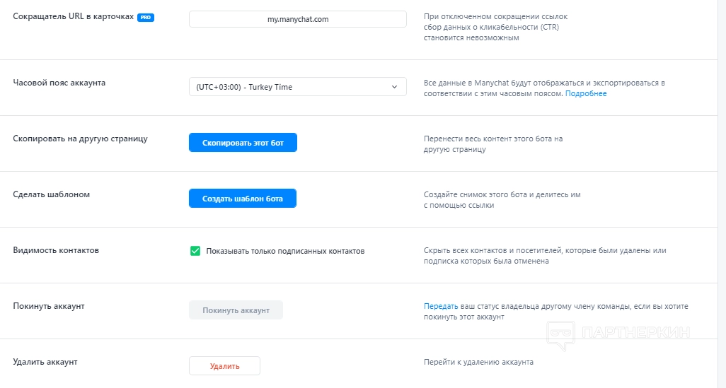 - Покинуть аккаунт. Передать статус владельца другому члену команды, если пользователь хочет покинуть этот аккаунт.