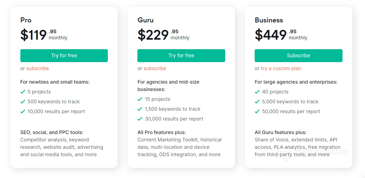 - премиум-инструменты: тренды, социальный и контент-маркетинг, API и другие.