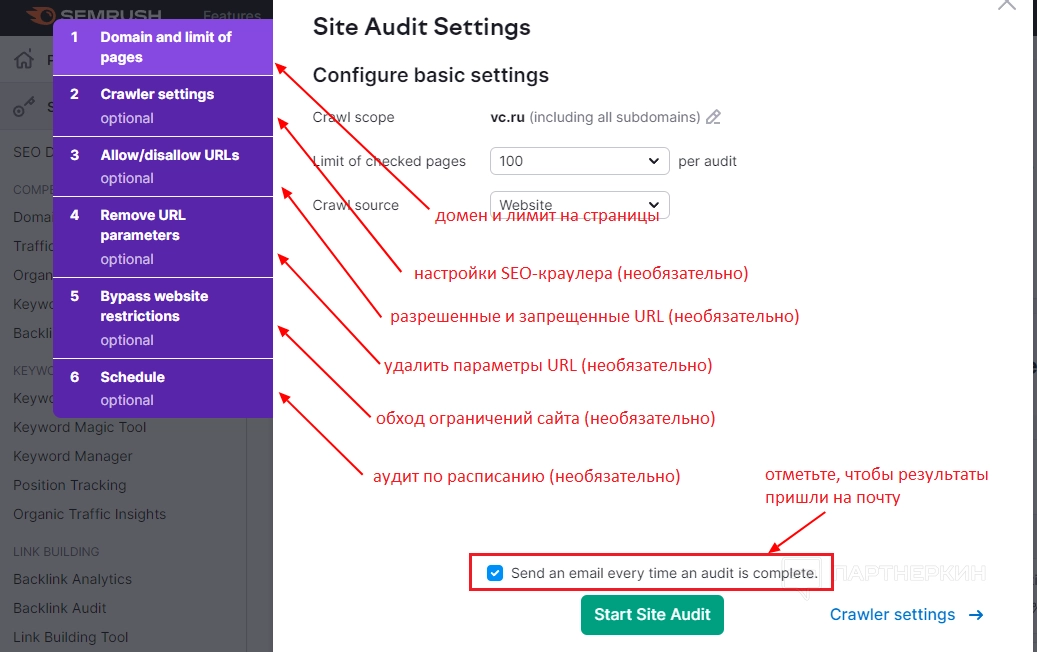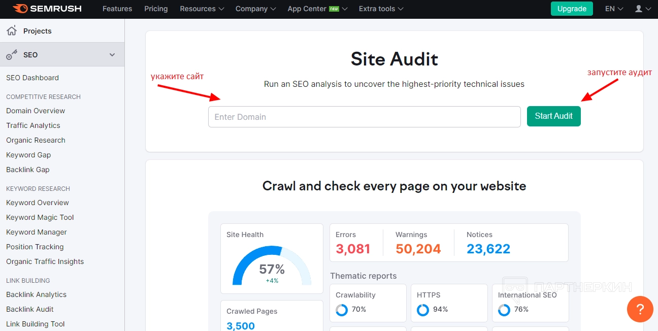 - Backlink Audit – можно отследить токсичность ресурсов, которые ссылаются на ваш сайт. Здесь можно избавиться от вредных ссылок, которые вредят авторитетности вашего сайта.