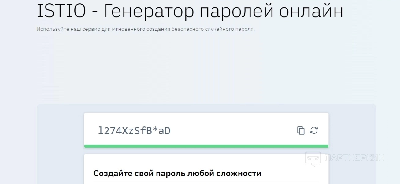 - Генератор паролей. Последнее направление работы сервиса, которое помогает пользователям генерировать пароли разных уровней сложности, которые в дальнейшем можно использовать в своих социальных сетях и не только. Достаточно зайти в раздел и выбрать понравившийся вариант из предложенных.