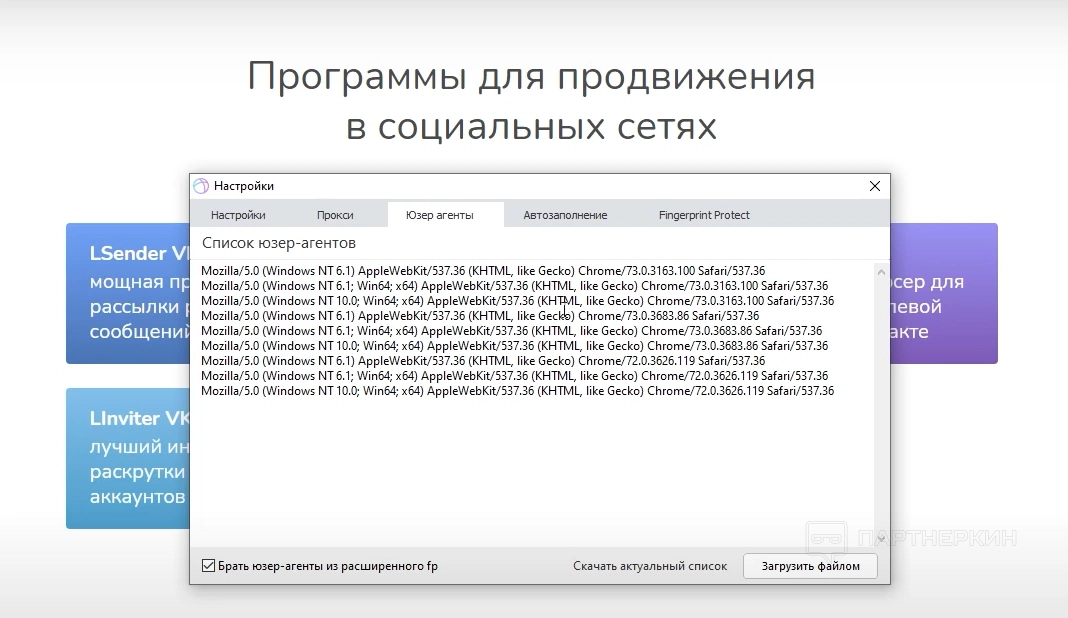 3. Юзерагенты. Минимальное количество ограничено — не больше 10 шт. Можно загрузить свой список (кнопка «Загрузить файлом»). Или купить пакет за ₽149 или ₽249, увеличив количество до 3000-5000 юзерагентов.