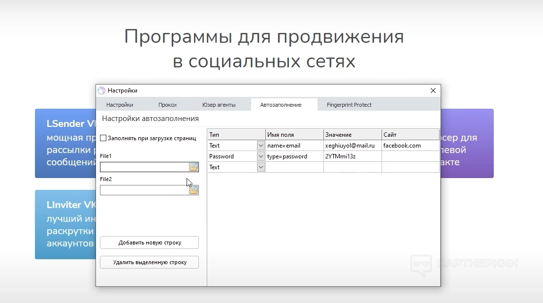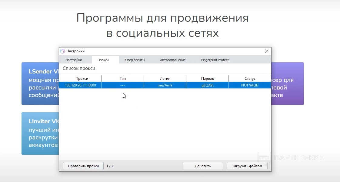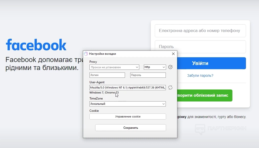 Настройки производят один раз. Пользователь заполняет прокси, юзерагенты, куки. Дальше программа сама присваивает данные автоматически для каждой вкладки.
