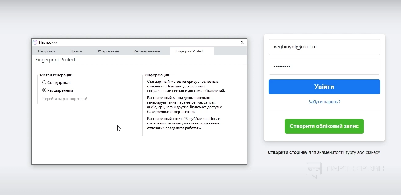 5. Fingerprint Protection. Настройка уникального отпечатка браузера. Для работы с социальными сетями, мессенджерами и простыми сайтами хватит стандартного бесплатного метода генерации. При работе со сложными платформами нужны специфические отпечатки. Для этого разработчики рекомендуют использовать расширенный метод генерации.