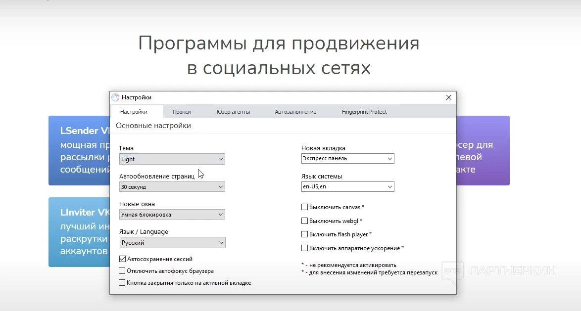 Антидетект-браузер простой в использовании, имеет минимум опций и постоянно обновляется. Каждую вкладку можно настроить индивидуально. Для этого программа в автоматическом режиме самостоятельно подбирает юзер-агент и прокси.