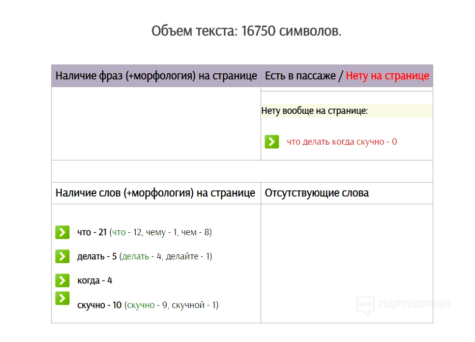 Поэтому его функционал схож — нужно вставить фразу и текст или урл страницы для анализа. Система подобьет количество нужных фраз в тексте или на странице. Больших возможностей у инструмента нет — он не дает понимания, нормальное ли количество фраз или его недостаточно, какие фразы были лишними, или чего не хватает. Именно поэтому и запустили Семанайзер для более углубленной аналитики.