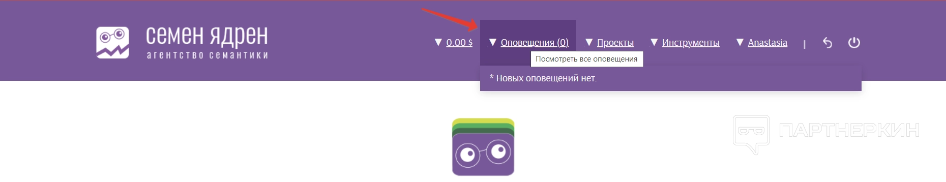 - оповещения — это раздел со всеми оповещениями сервиса;