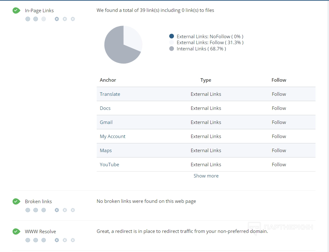 Специально для обозначения «удовлетворительных» значений сервис добавляет зеленый флажок рядом с каждым из показателей. При этом стоит понимать, что каждая из поисковых систем по-своему оценивает seo-показатели, из-за чего Google может начать «ругаться» на количество знаков, в то время как для Yahoo! это будет показателем нормы.