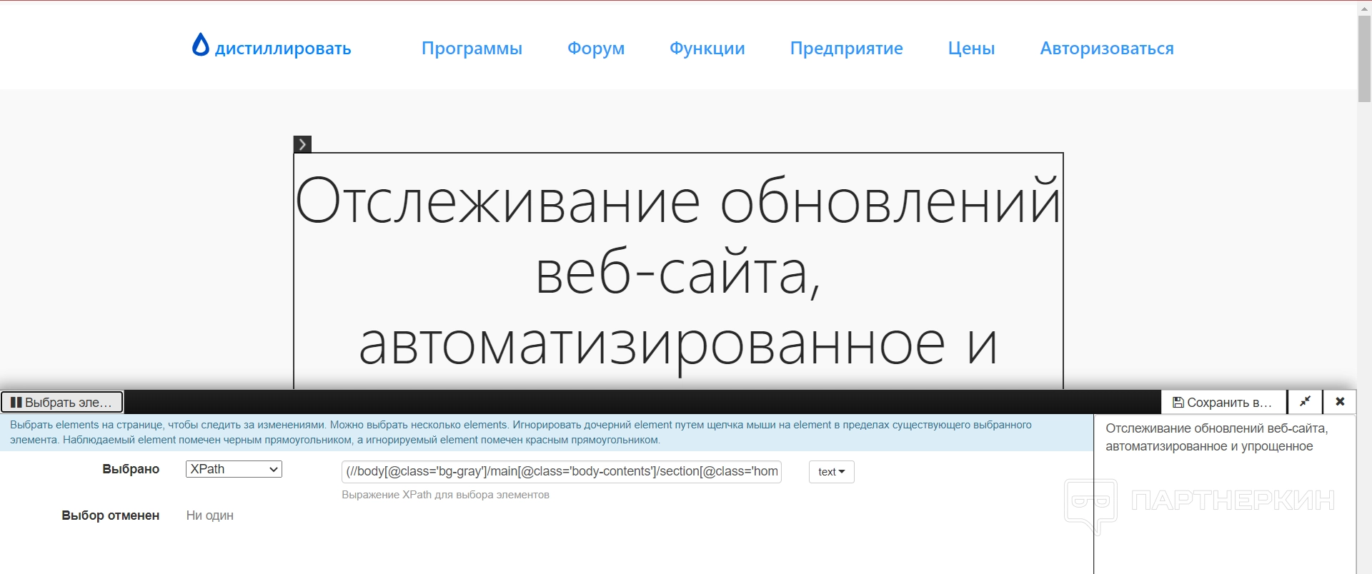 При выборе веб-страницы система открывает Google, и пользователю нужно зайти на страницу для сканирования. Далее достаточно нажать на команду «Выбрать элемент» и, соответственно, выбрать нужный элемент на странице.