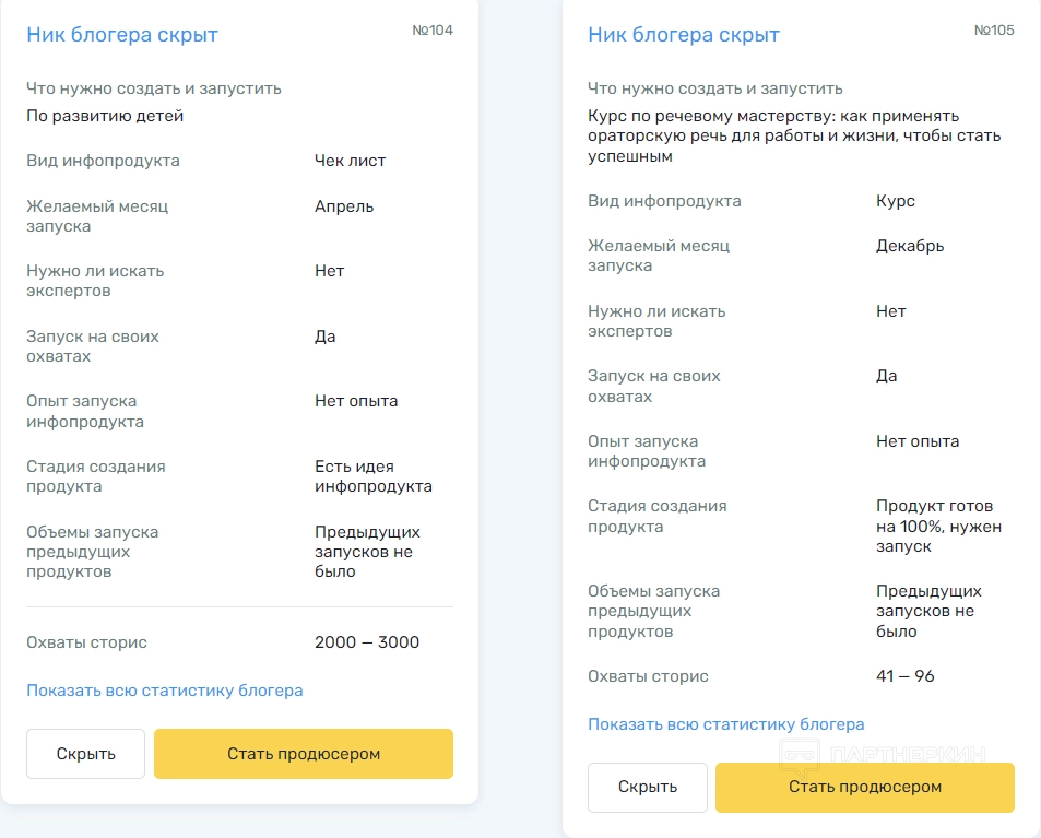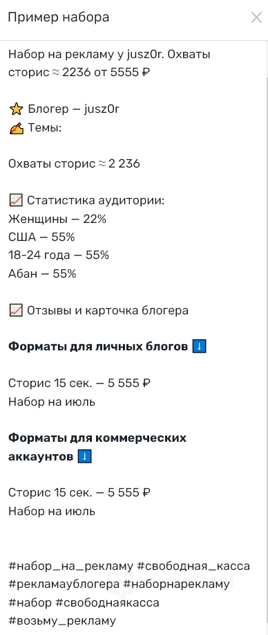 - блогер (ник инфлюенсера — в демо-версии информация скрыта);