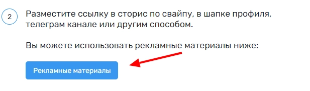 - Разместить ссылку в сторис в шапке профиля, телеграм-канале или другим способом. По желанию можно использовать рекламные материалы, доступные по ссылке.