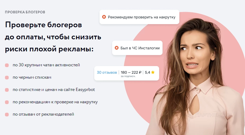 - проверка блогеров до оплаты (поможет снизить риски плохой рекламы);