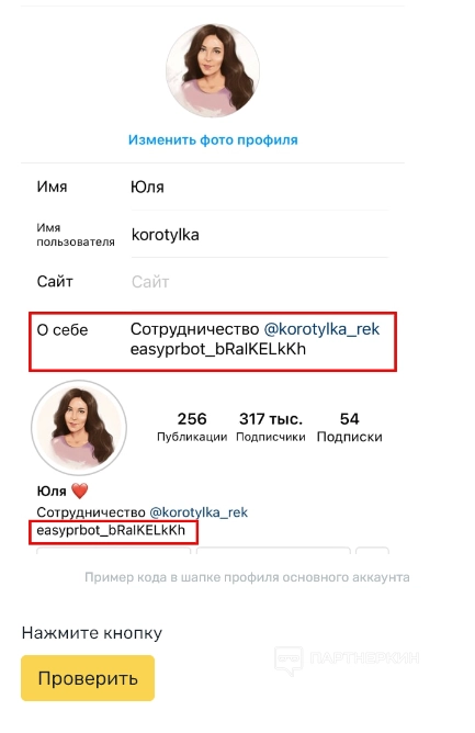 Затем — нажать кнопку «Проверить». Если блогер все сделал правильно, появится уведомление «Основной аккаунт верифицирован».
