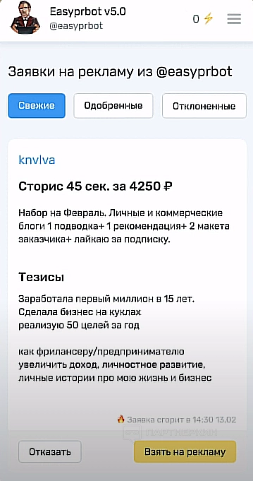 Как получать заявки на рекламу из телеграм-бота Easyprbot