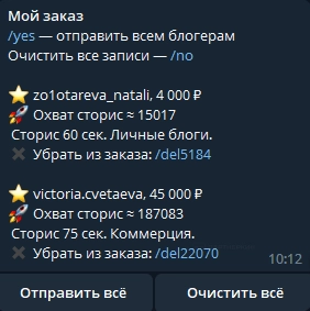- Нажать кнопку «Блогер, посмотри директ /bell…». Бот отправит напоминание инфлюенсеру.