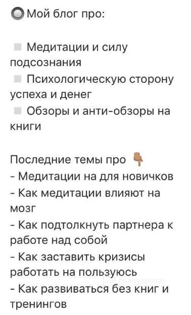 - Написать тезисы об аккаунте пользователя или о том, что нужно прорекламировать. Пример тезиса: