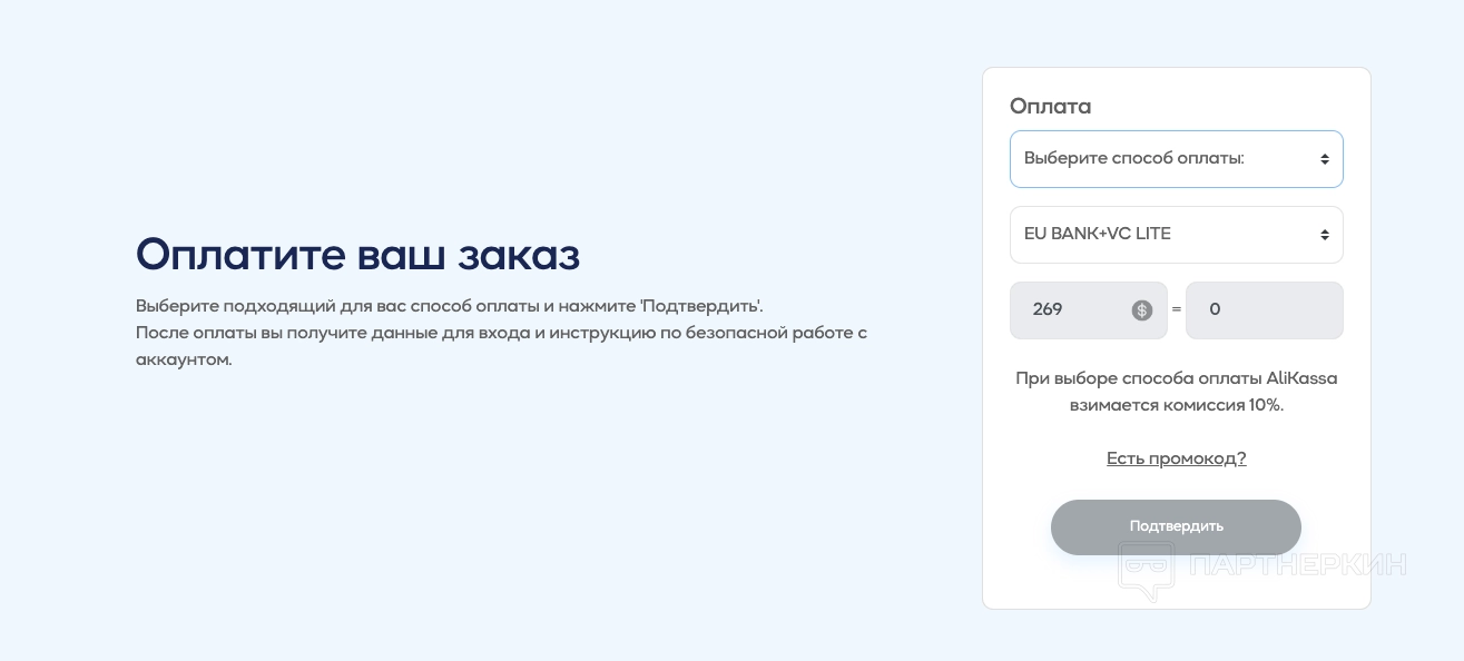Способы оплаты: