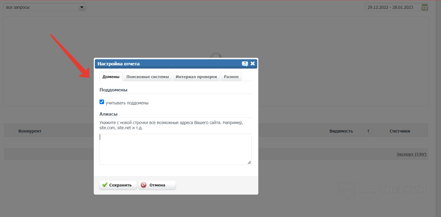 Домены — в этом разделе можно указать все варианты написания домена пользователя, чтобы они также анализировались. Например, указать не только обычный домен вроде домен.ру, но и www.домен.ру, https://домен.ру. Также здесь можно указать все поддомены и разные варианты доменных зон, если они есть, — например, домен.ком и домен.ру.