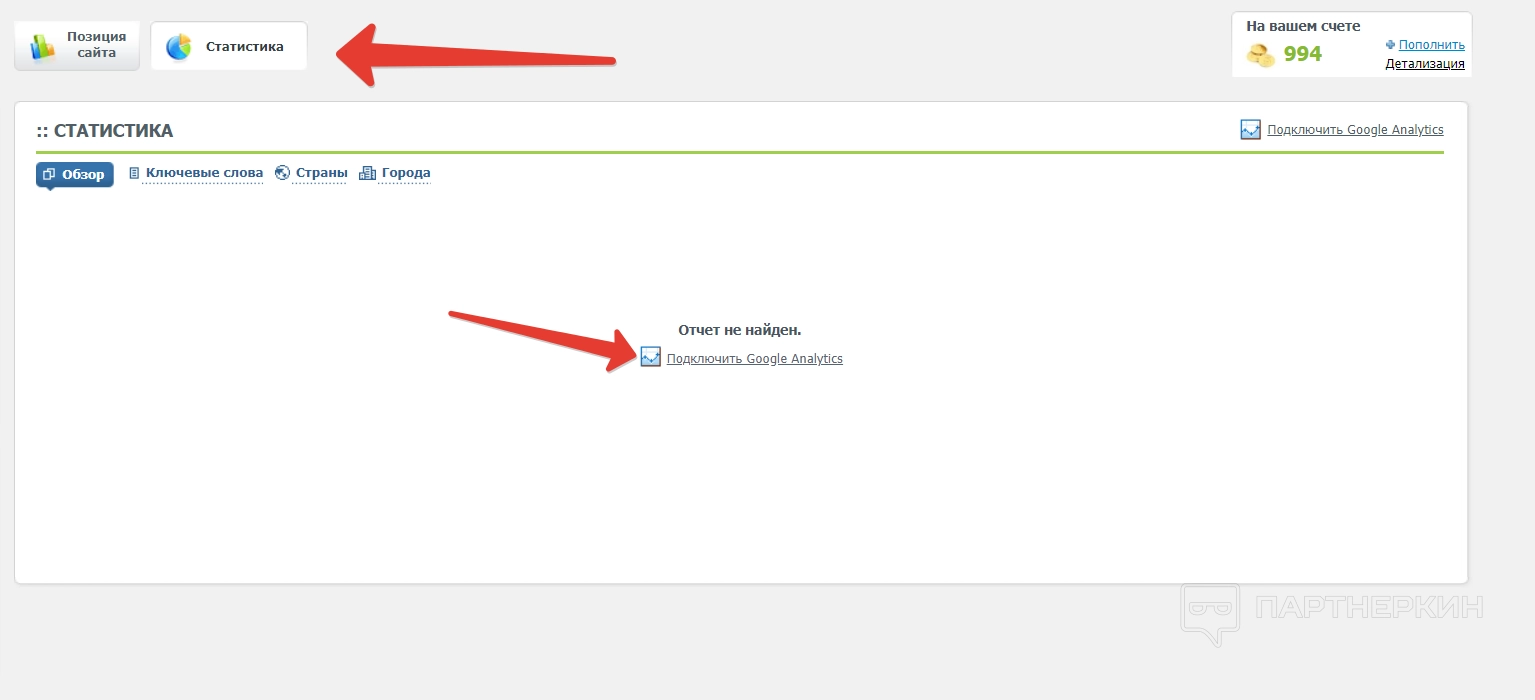 Помимо проверки позиций своего сайта можно также посмотреть статистику, но для отображения всей информации придется сначала подключить Google Analytics.