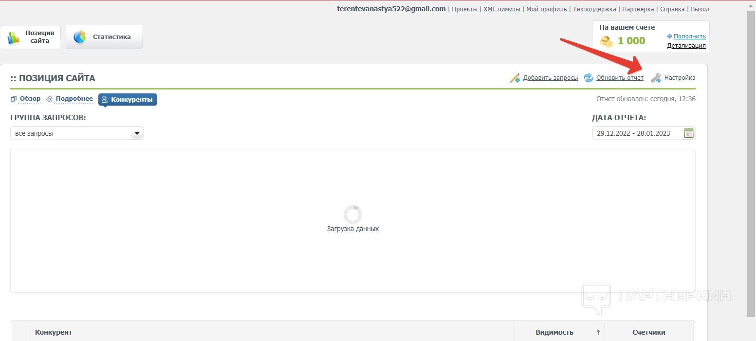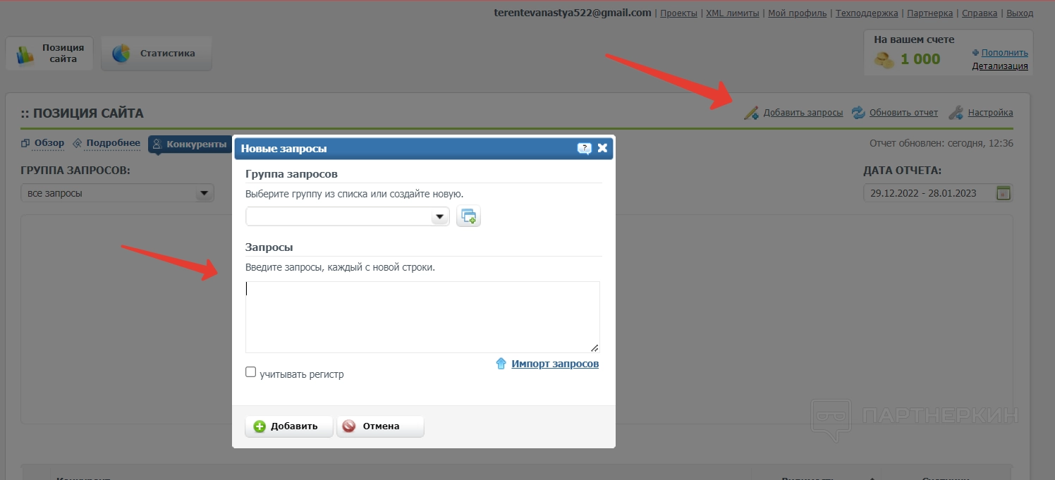Все запросы можно либо указать вручную, либо импортировать текстовым файлом для удобства. Сразу после добавления система начнет обновлять отчет позиций. При желании можно настроить и периодичность обновлений через настройки.
