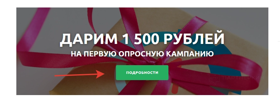 Ниже вебмастер можно ознакомиться с акцией, в рамках которой каждому новому участнику предоставляется 1 500 рублей на первую опросную компанию.