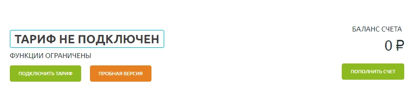 Далее идет блок, где отображается текущий тариф, баланс, а также кнопки для подключения услуг и пополнения счета.