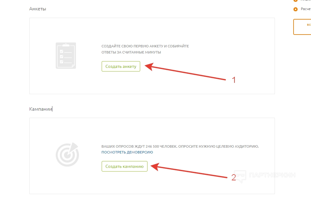 В нижней части раздела есть блоки для создания анкет и опросных кампаний. В первую очередь пользователь должен создать анкету. Только тогда появится доступ к проведению опросов.