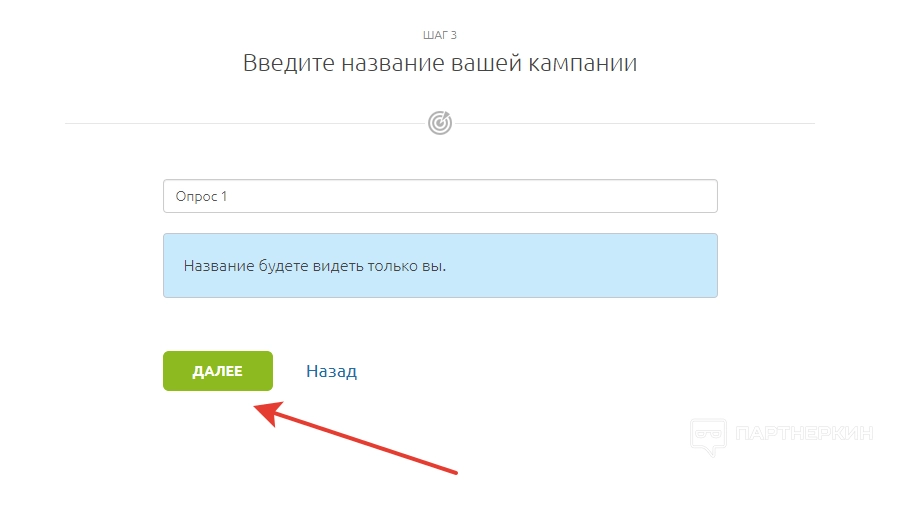 На следующем этапе даем название опросу и снова жмем «Далее».