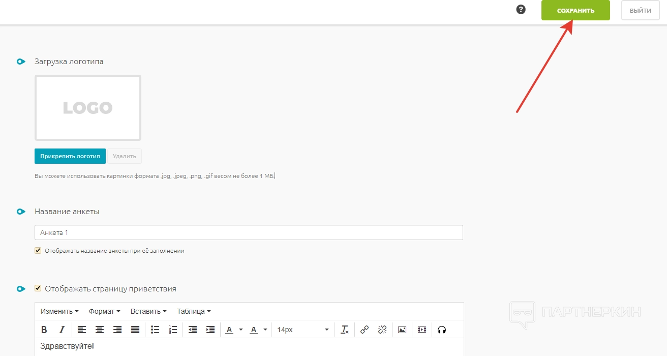 Когда анкета будет настроена, поднимаемся в верхний правый угол и жмем зеленую кнопку «Сохранить». Созданная анкета автоматически отобразиться в соответствующем разделе личного кабинета.
