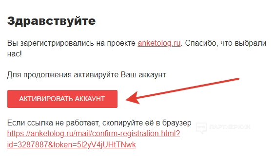 По завершении регистрации на электронную почту придет письмо, где будет ссылка для активации аккаунта. Кликаем на «Активировать аккаунт» и переходим в личный кабинет.