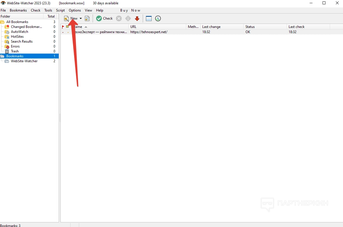 Проверка сайта осуществляется следующим образом. В первую очередь жмем на кнопку New и добавляем в систему сайт, указывая его URL-адрес.