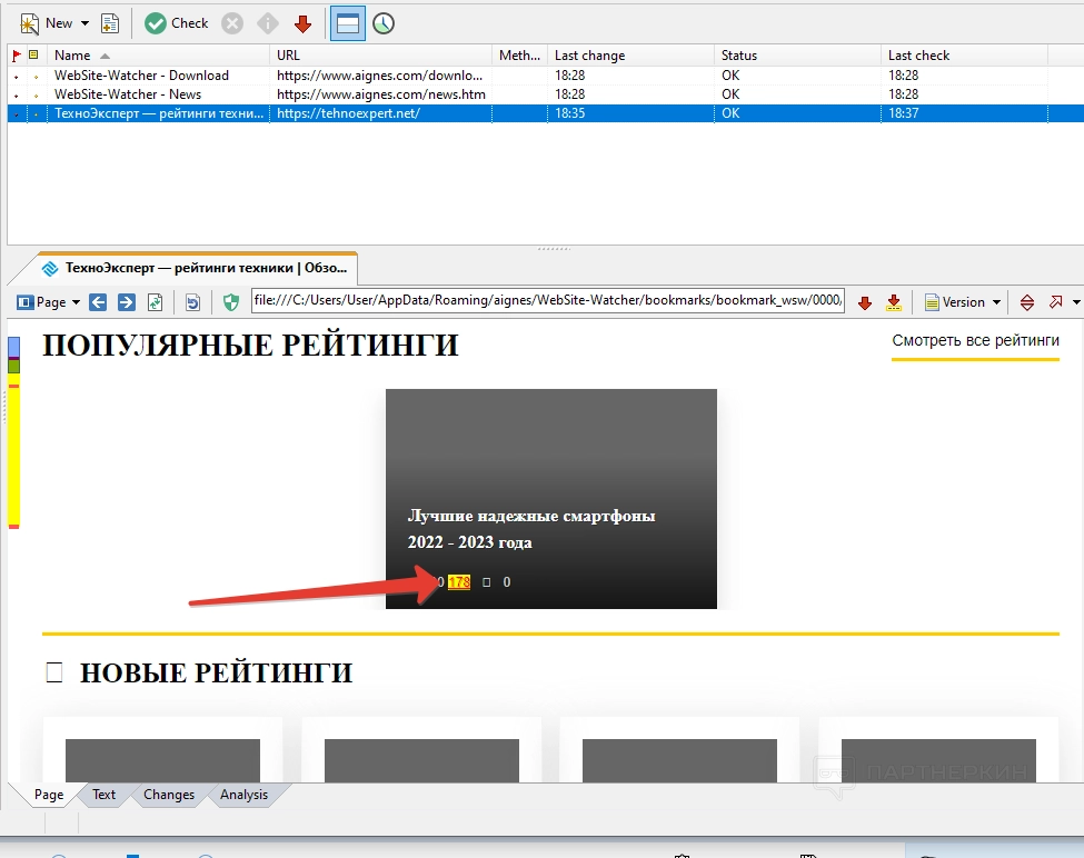 По завершении в нижней части окна откроется мини-браузер, в котором все изменения на страницах добавленного сайта будут подсвечены желтым фоном.