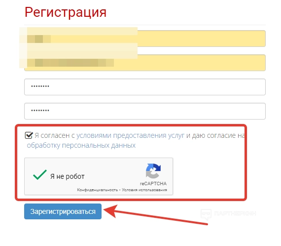 В процессе регистрации нужно указать имя, электронную почту и пароль. Также потребуется дать согласие с условиями предоставления услуг и пройти проверку капчи.