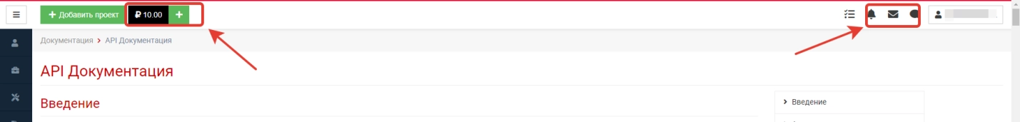 В верхнем блоке можно найти баланс, уведомления от системы и график работы техподдержки.