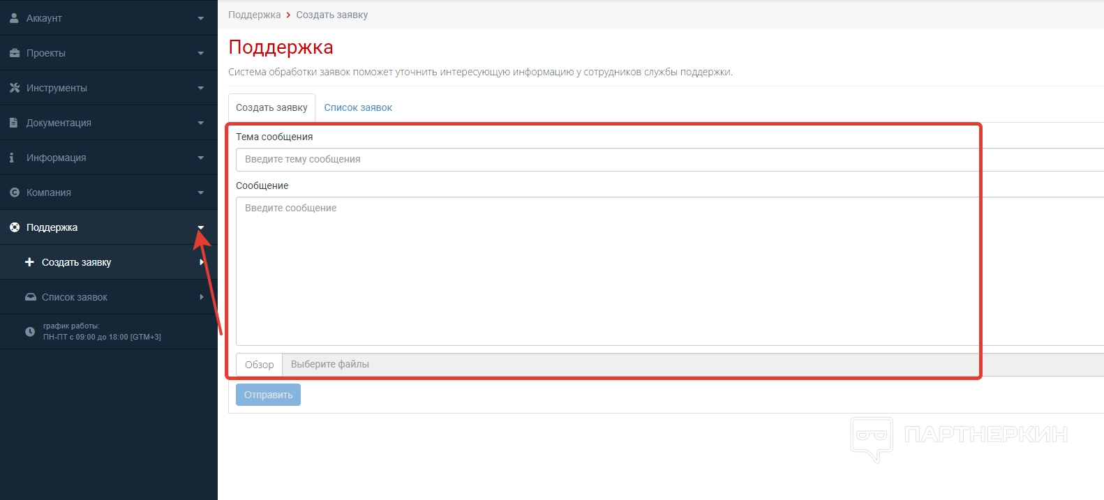 Для связи с техподдержкой необходимо спустится в нижнюю часть экрана и выбрать «Поддержка». Вопросы задаются через специальные заявки, где нужно указать тему и расписать проблему.