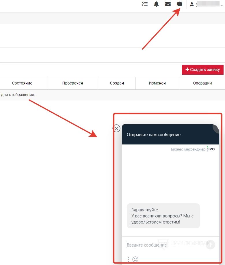 Еще один способ связи — кликнуть на диалоговое окошко в верхнем правом углу и в появившемся блоке онлайн-чата отправить сообщение.