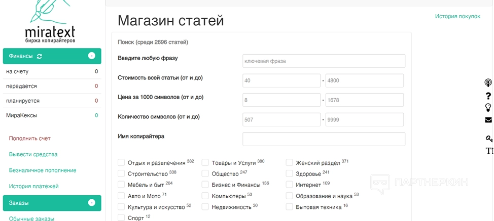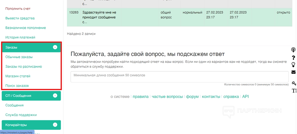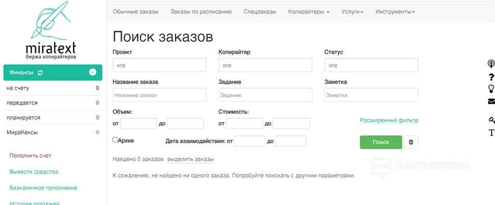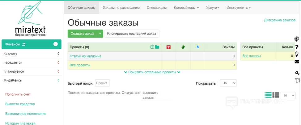 - Поиск заказов . Удобный инструмент для поиска статей или копирайтеров.