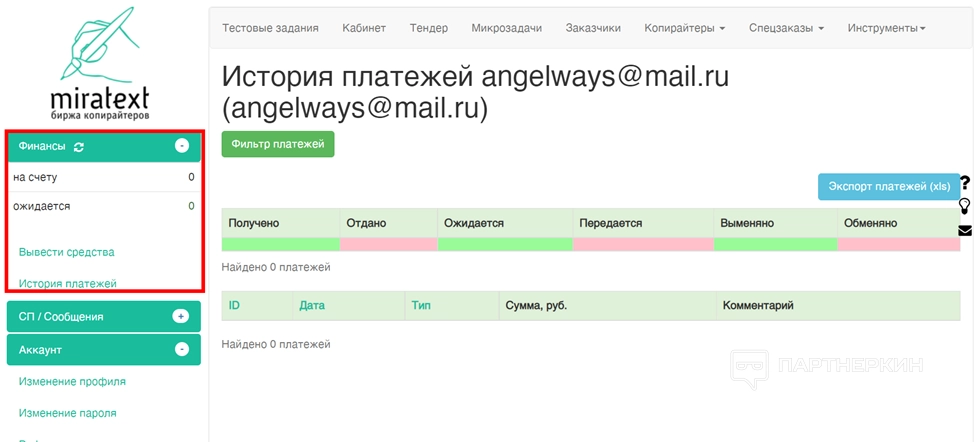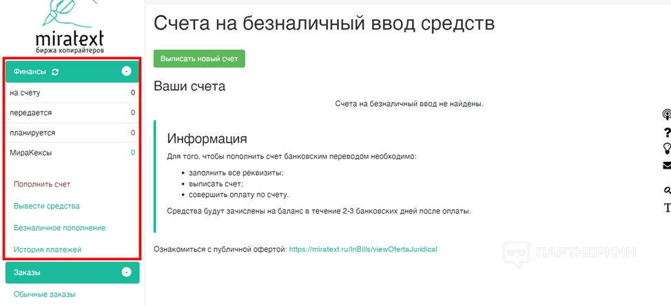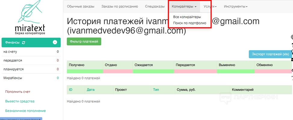 Заказчик может пополнять баланс, переводить деньги авторам и возвращать средства обратно. Счет на бирже один (не считая бонусов МираКексы).