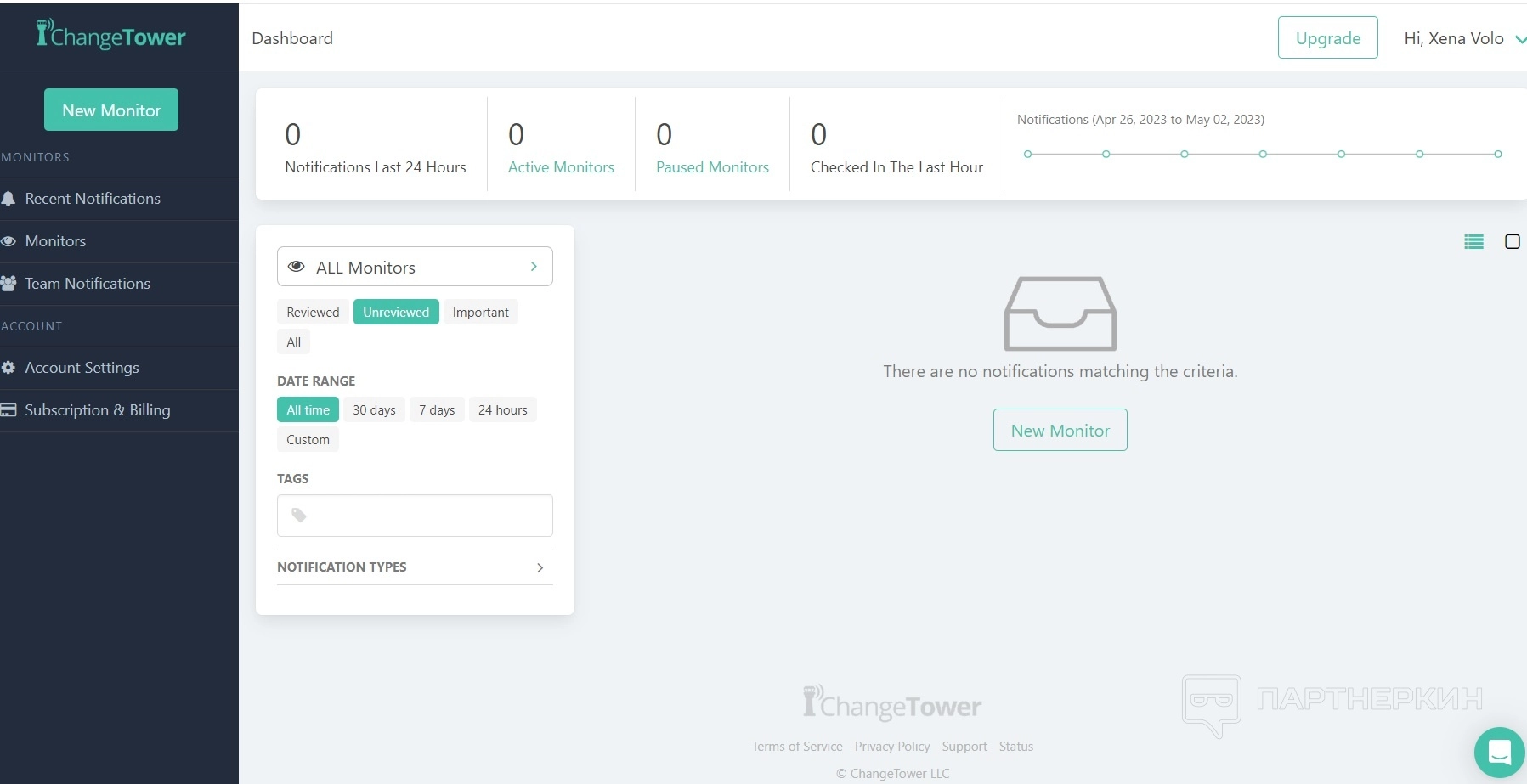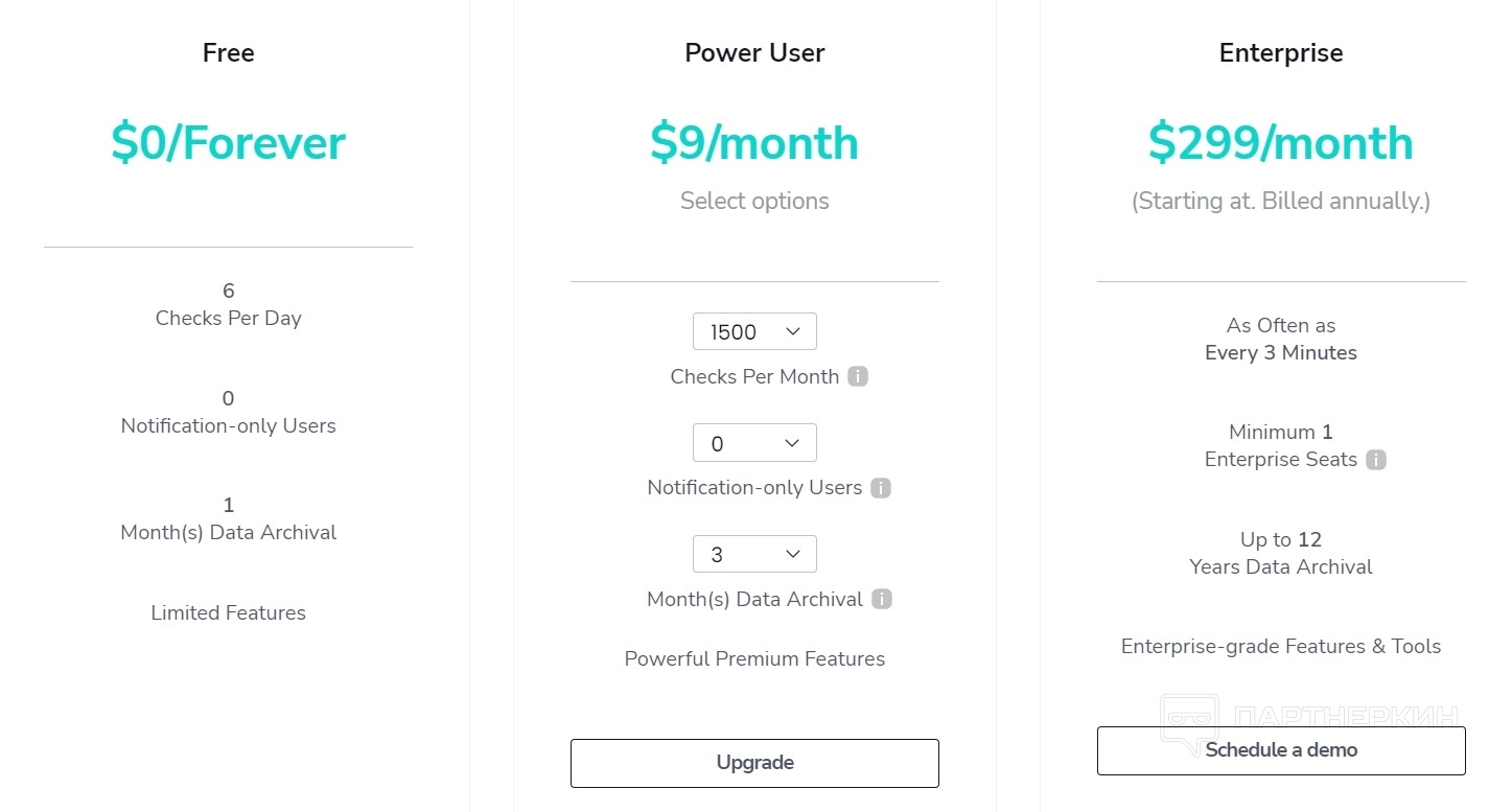 У Changetower есть бесплатный тариф с ограничениями: 6 проверок в день, 1 месяц архива данных. Платные тарифы начинаются от $9 /месяц — 1 500 проверок ежедневно, 3 месяца архива данных. Есть тариф для предприятий — $299 / месяц