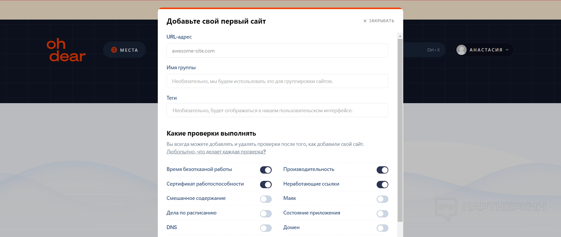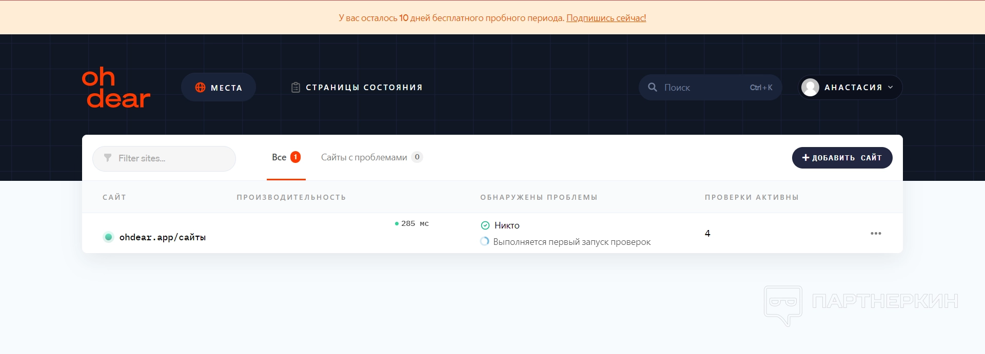 После того, как все данные будут указаны, их можно сохранить — тогда сайт отобразится в списке. Там же будут показываться все результаты проверок.