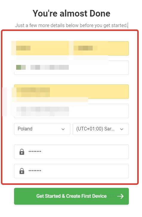 По завершении заполняем анкету, где нужно указать имя, номер телефона, название и сайт компании, часовой пояс, страну и пароль.