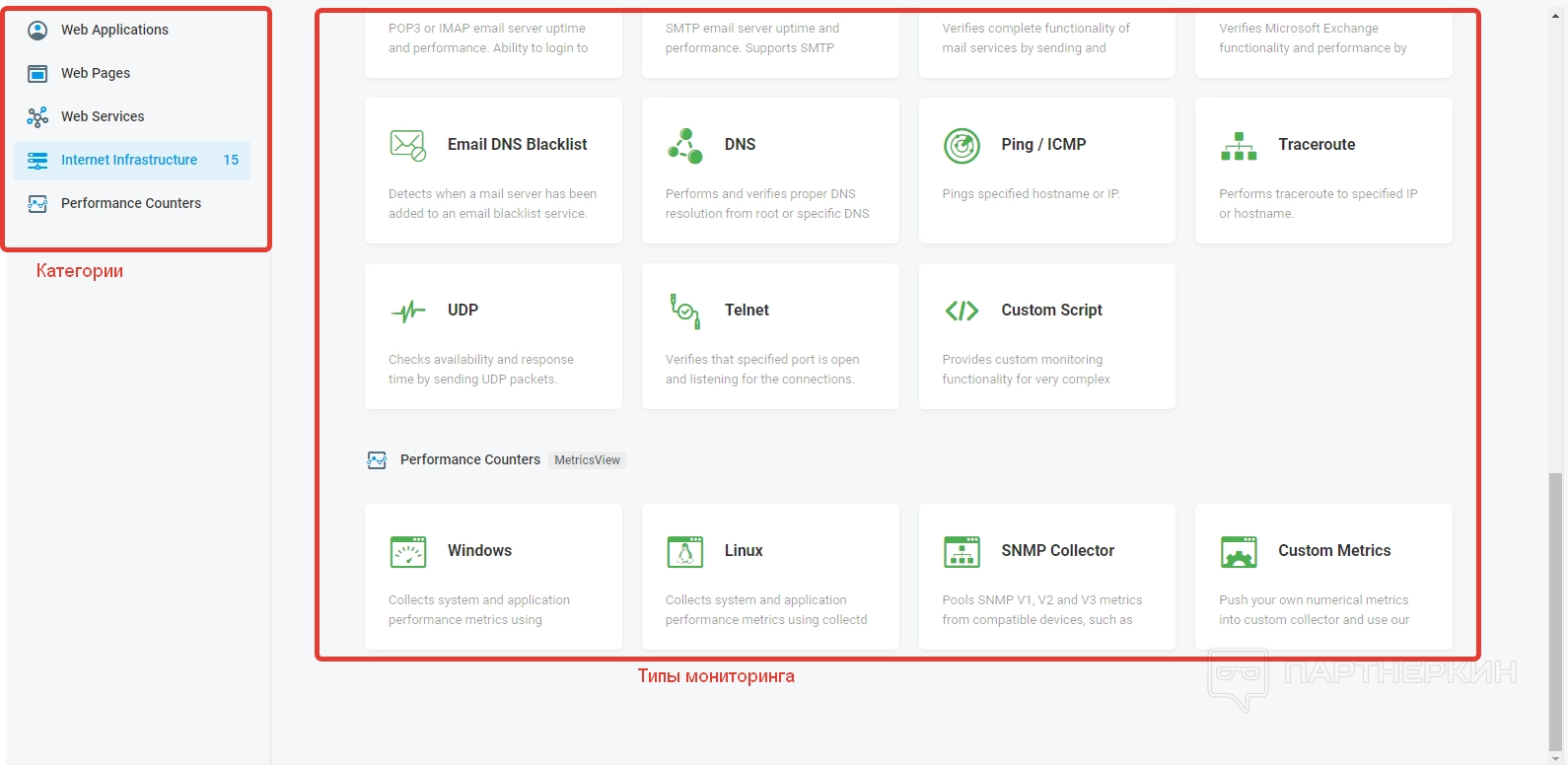 Для веб-сервисов доступны следующие варианты мониторинга: