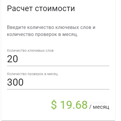 Пополнять счет можно на любую удобную сумму в любое удобное время. Списание средств со счета осуществляется только за фактическую проверку ключевых слов. Преимущество в том, что оставшиеся на счету средства не будут сгорать в конце месяца. Чтобы рассчитать стоимость проверки, следует воспользоваться калькулятором на главной странице сайта.